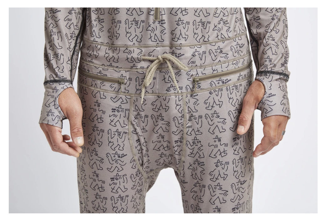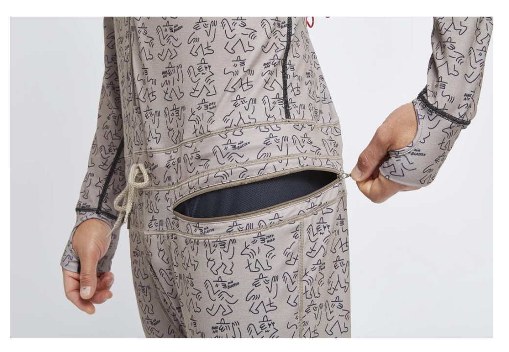 The Airblaster Classic Ninja Suit in the Navy Camp print is the original and iconic one-piece hooded base layer that has been perfected over years of testing and use by professional snowboarders. Here are the details of this classic Ninja Suit:
