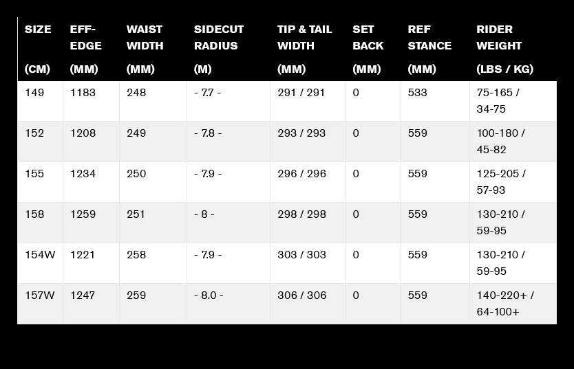 • Linear Twin Sidecut improves edge grip and landing leverage