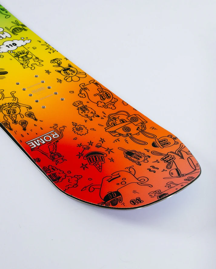 Rome Snowboards helped cement the core values of snowboarding counter culture. Rome is rider owned and operated. Not owned by a ski company. Rome SDS (Snowboard Design Syndicate) believes that snowboarders should have strong personalities and be characters. Style matters, it's what separates us from the jocks. Snowboarding should never feel comfortable being called a sport, because it is a lifestyle. Snowboarding is not the Olympics. It is going out with your friends and getting weird on the snow.