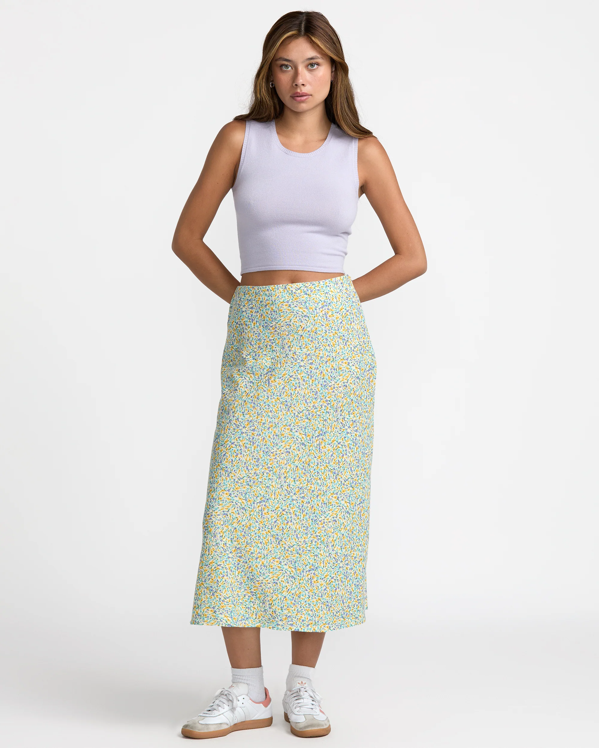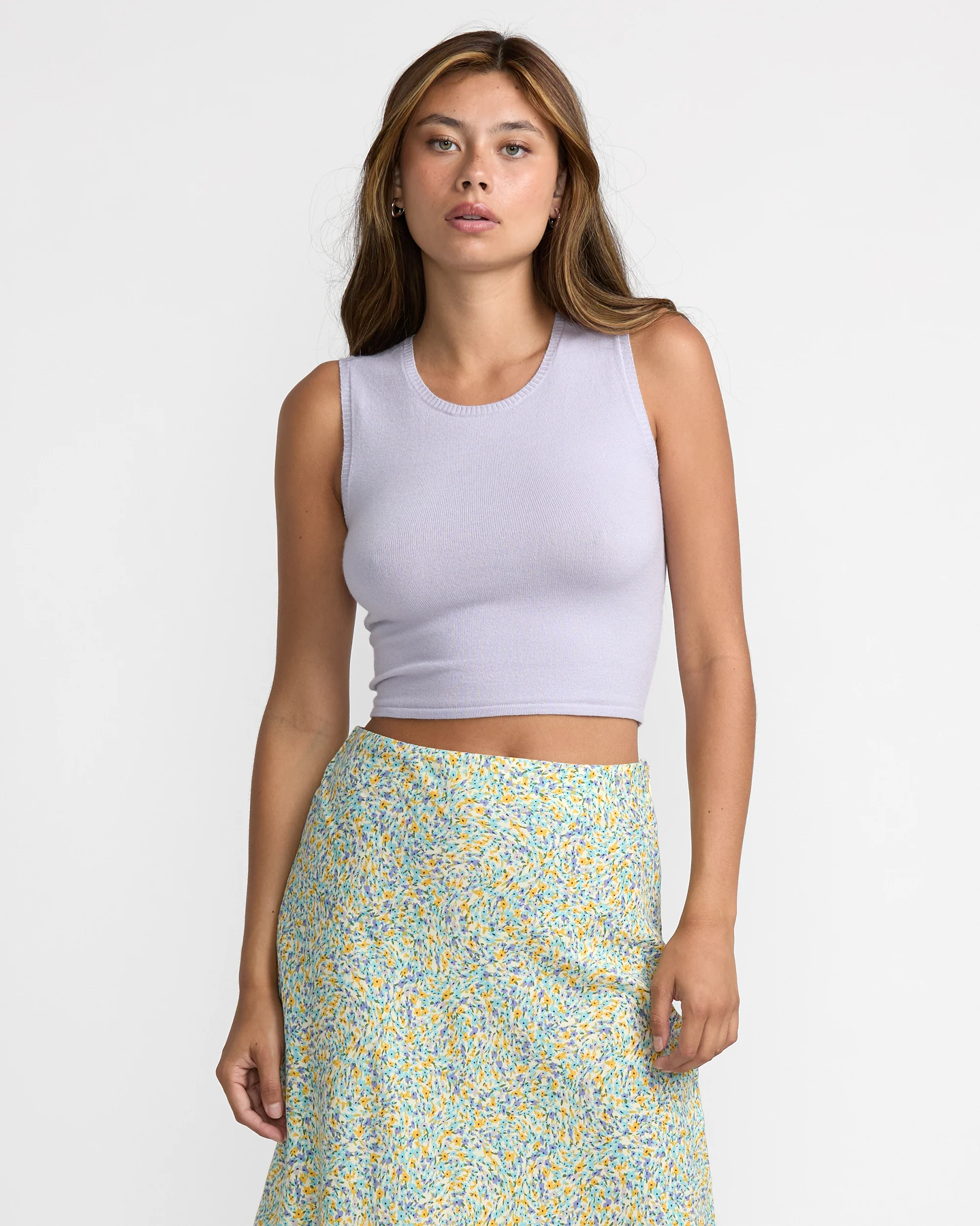 Step up your layering game with the RVCA Women's Shiver Sweater Top — a modern essential with a sleek, fitted silhouette. Designed with a sleeveless cut and classic crew neckline, this versatile top is perfect for wearing solo or styled under jackets and cardigans. The soft and stretchy viscose-nylon jacquard knit delivers all-day comfort with a touch of texture for added style.